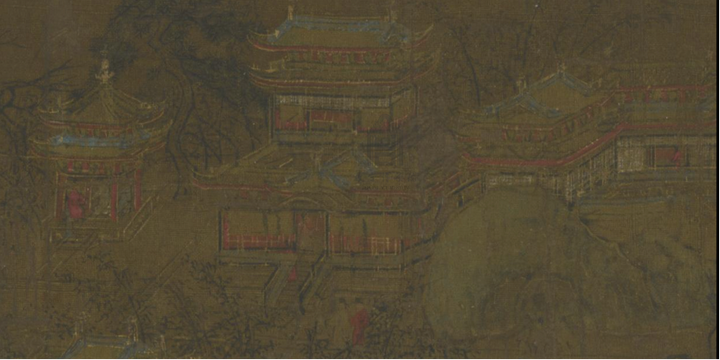 这不光是形式像破风,就连这个密密麻麻的斗都像极了日本的神社。至于说的《蓬壶仙侣图》和《宫苑图》中的类似结构,我觉得和这个还是有一定区别。