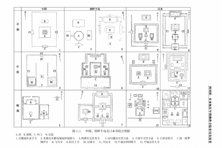 那目前的寺院可能是唐代重建的吗?知网上有一篇何利群老师《东亚地区早期佛教寺院布局及演变》[2]的文章,系统梳理了东亚地区南北朝至唐的部分寺庙布局。从文中可以窥出这个时期的寺院内塔是核心。文中写道这个时期寺院布局以塔为中心向以殿为中心转变。