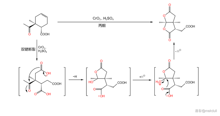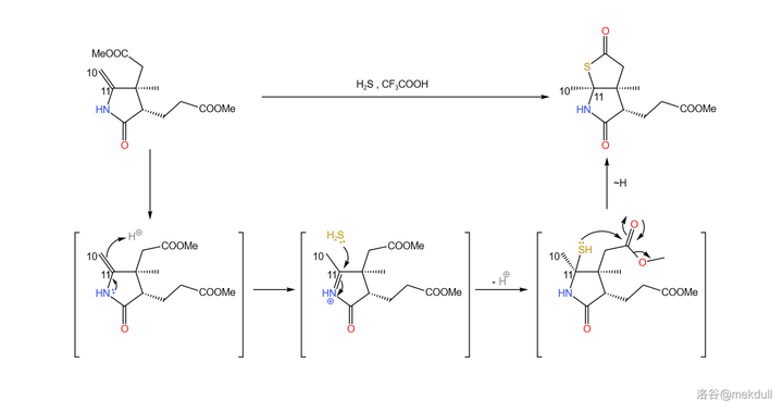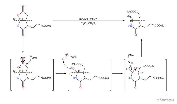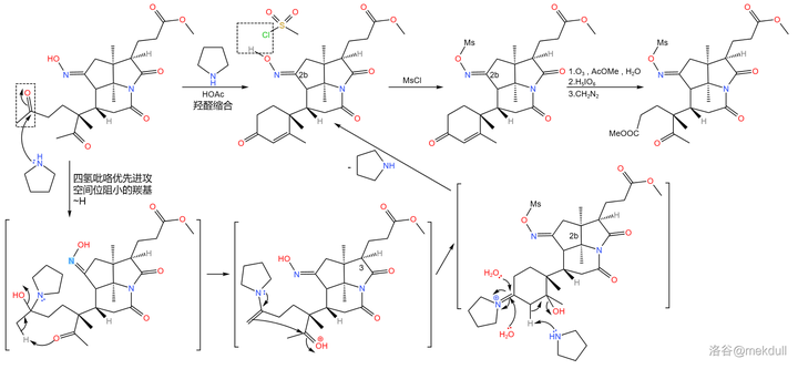 (注:由于 号位有甲基的存在,导致有一侧的进攻受阻,因此产物的立体构型是单一的。)