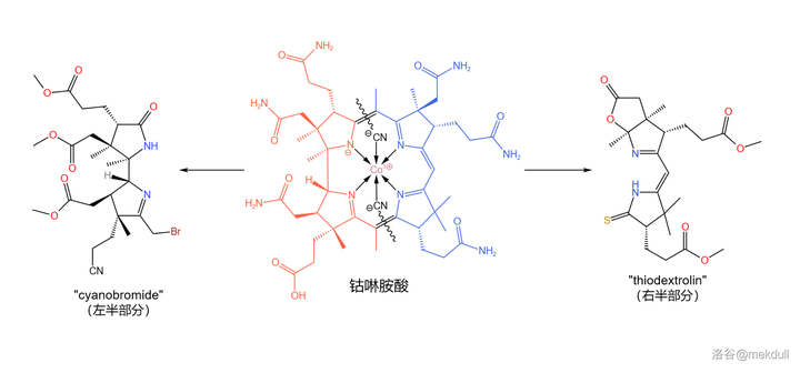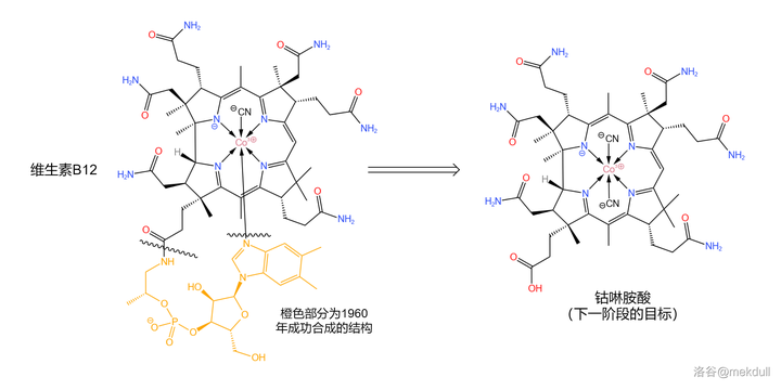 等人成功合成——这也算是全合成中的第一个阶段性成果。于是,后续合成工作的目标变成了钴啉胺酸(如下图),而咕啉结构的构建也随即成为了核心问题: