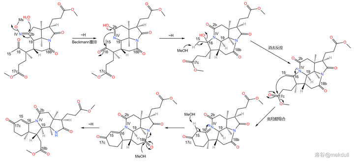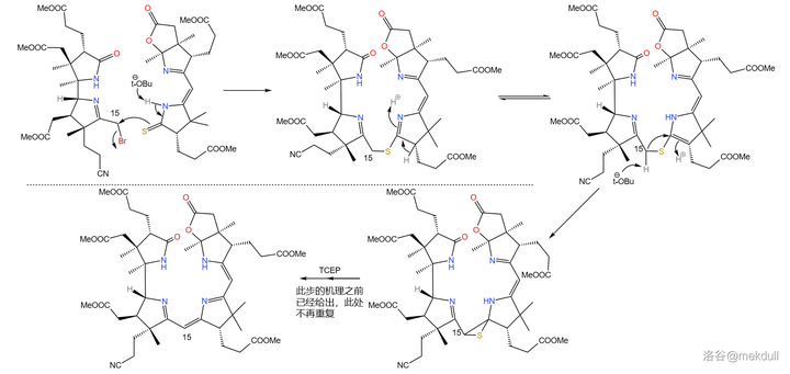 由于没有详细研究, 并没有在论文中给出生成伪钴啉胺酸的详细机理。但这或许已经不重要了,因为这一步的完成,标志着维生素B12的全合成宣告成功。这座“有机合成界的珠穆朗玛峰”,就这样在人们的齐心协力之下被征服了。这一年是