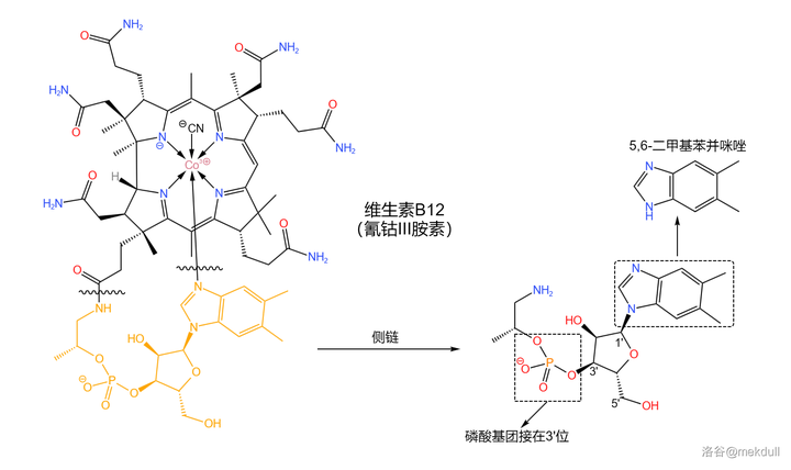 但是,我们的旅程还没有结束。毕竟,钴啉胺酸距离维生素B12还差一个结构类似于核苷酸的侧链,那这个侧链又应该如何合成呢?