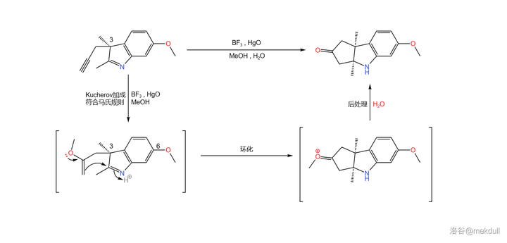 加成反应,得到烯基醚;随后,分子内自发环化,最终得到一个三环结构的酮: